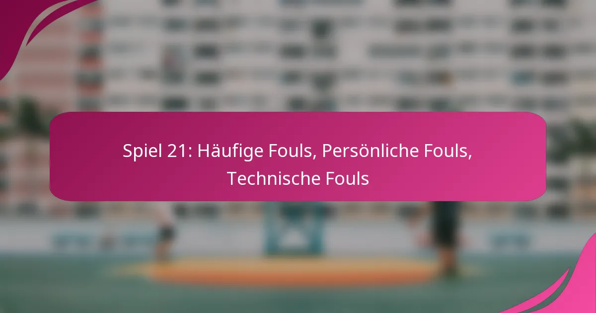 Im Spiel 21 ist das Verständnis der verschiedenen Arten von Fouls entscheidend, um Fair Play aufrechtzuerhalten und die Leistung zu verbessern. Häufige Fouls stören das Spiel und können zu Strafen führen, während persönliche Fouls Regelverstöße von Spielern beinhalten, die sowohl die individuelle als auch die Teamdynamik beeinflussen. Technische Fouls hingegen sind Kontaktverstöße, die ebenfalls den Spielverlauf beeinflussen können und zu Freiwürfen für das gegnerische Team führen.